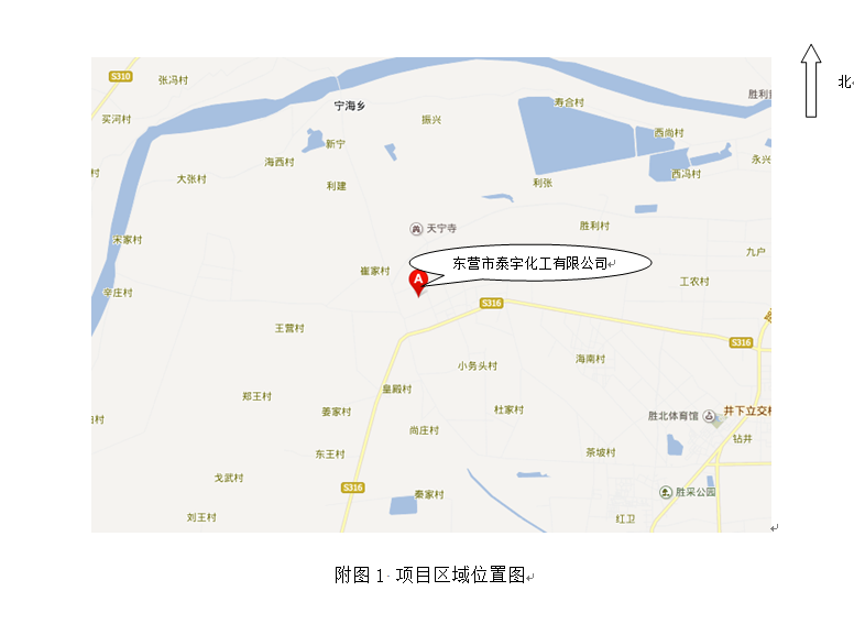 東營(yíng)市泰宇化工有限公司位于墾利縣勝坨鎮(zhèn)工業(yè)園區(qū)。廠(chǎng)區(qū)北面為勝坨鎮(zhèn)工業(yè)園區(qū)道路,路對(duì)面為東辰集團(tuán)建筑安裝有限公司,南側(cè)為寶仕達(dá)公司(為油田生產(chǎn)設(shè)備配件的企業(yè)),東側(cè)為東辰集團(tuán)溶劑油項(xiàng)目,西側(cè)為工業(yè)園區(qū)道路,道路西側(cè)為空地。 |