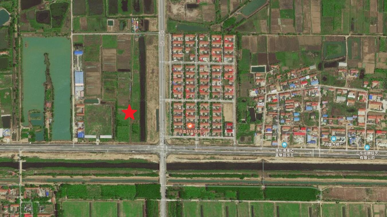 該項目距離東側民豐路路邊46m,該加油站位于東營市墾利區德州路與民豐路交叉口西北側。東側為民豐路,用地邊界距路邊46m,路東距用地邊界約100m處為高蓋村(人口約800人),其村內幼兒園距站區邊界約720m。南側為德州路,用地邊界距路邊8.5m,路南為空地。西南方向約400m處為王營村。西側為樹林,北側為空地。 |