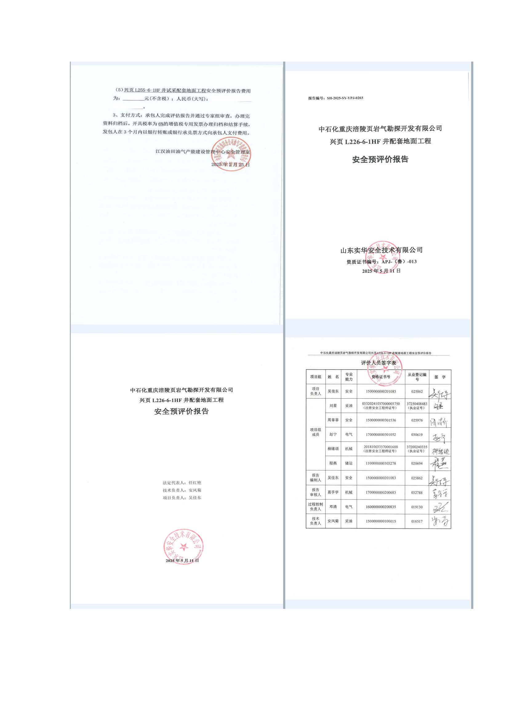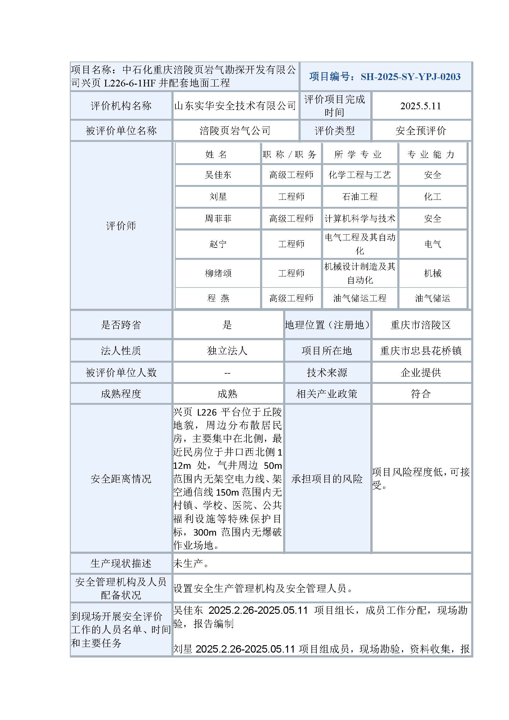 中石化重慶涪陵頁巖氣勘探開發有限公司興頁L226-6-1HF井配套地面工程安全預評價