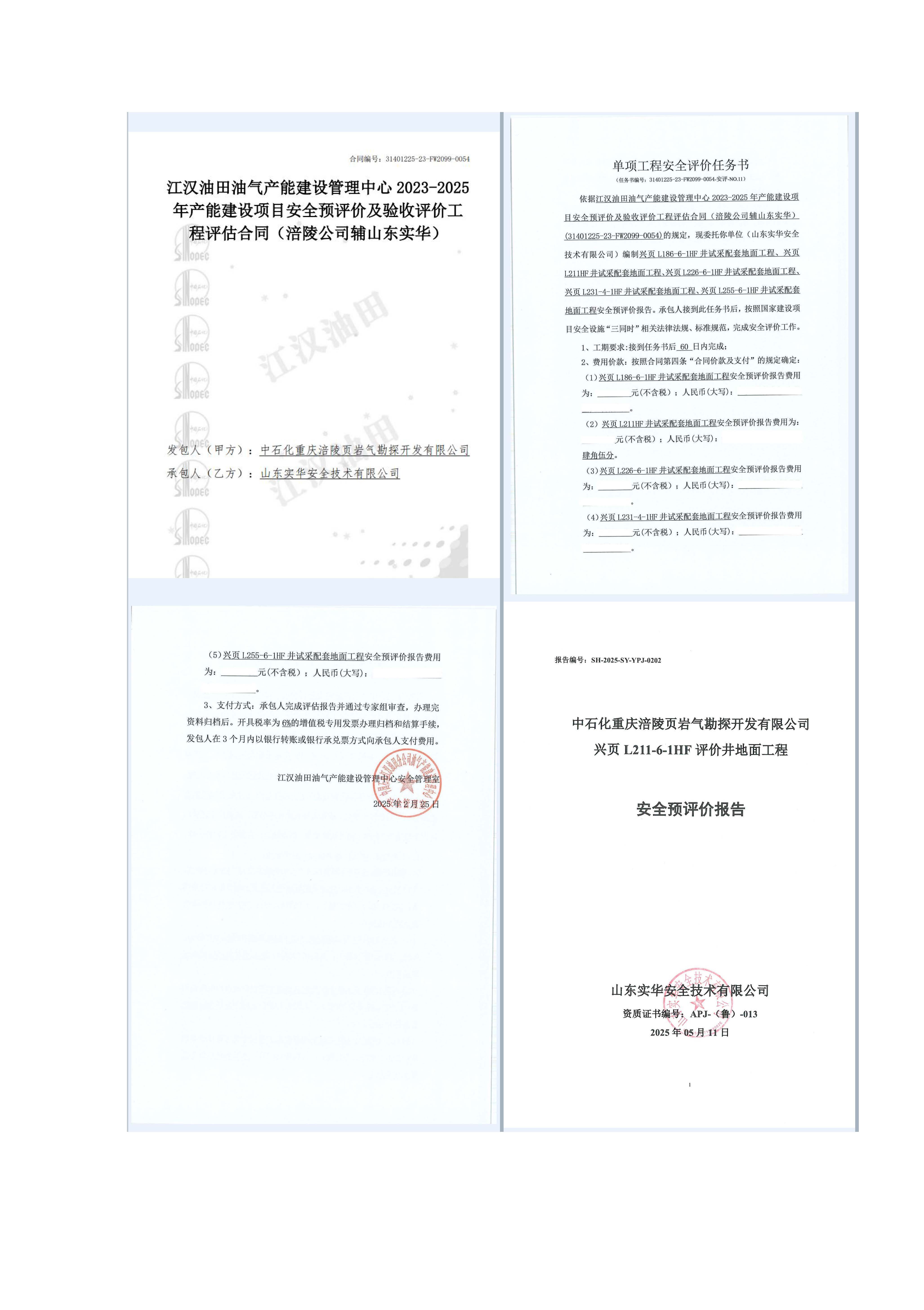 中石化重慶涪陵頁巖氣勘探開發有限公司興頁L211-6-1HF評價井地面工程安全預評價