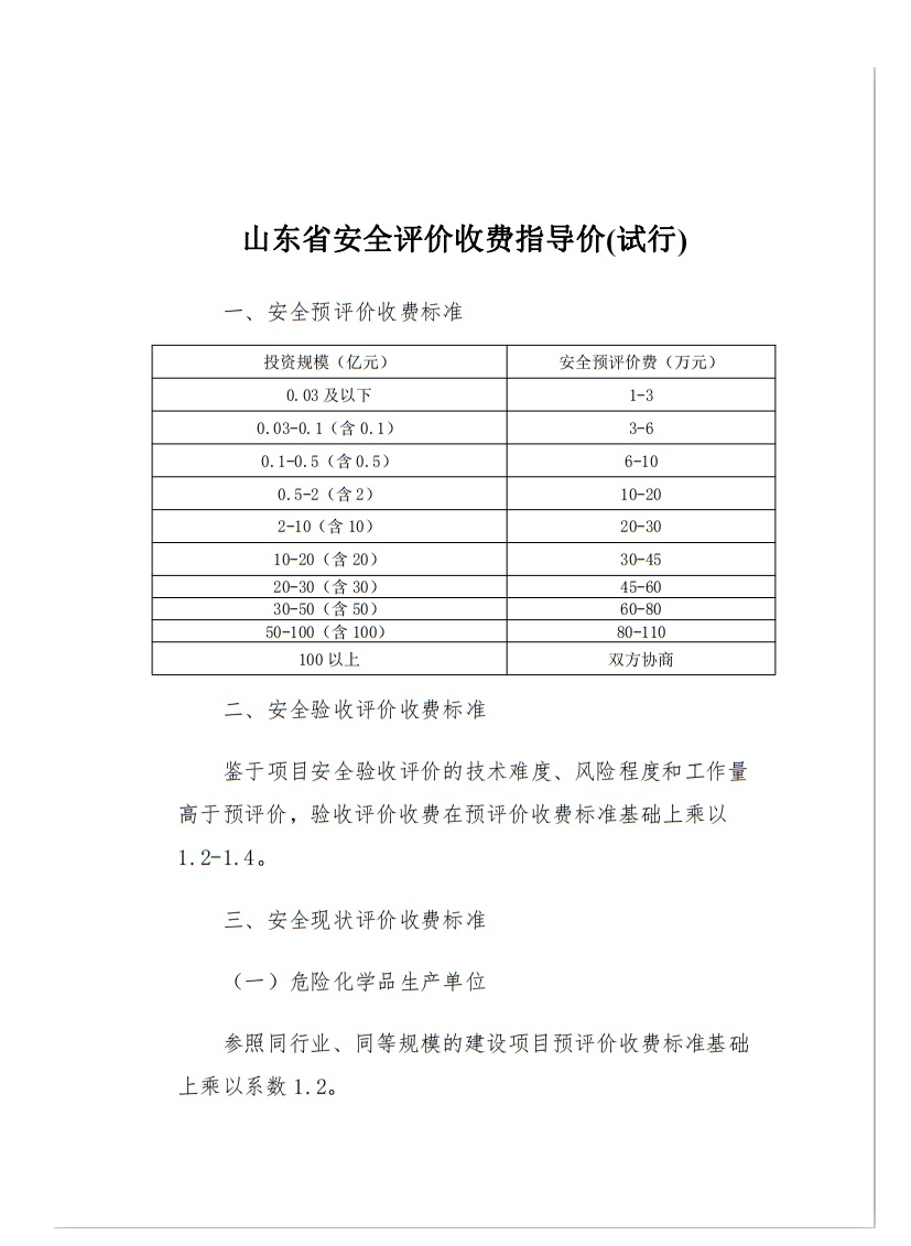 根據《山東省安全評價收費指導價(試行)》魯安管協字〔2006〕4號的要求,我單位收費標準如下: